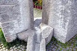 2. Birgitt Eltzel: Der Cecilienplatz nimmt Gestalt an. Riesenquader als Brunnen, Berliner Zeitung, 1994, abgerufen am 3. März 2024.