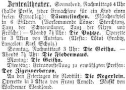 - ↑ a b c d e f Horst Windelboth: „Kleiner Musentempel in der Alten Jacobstraße.“ Über das Berliner Central-Theater. In: Der Bär von Berlin, 6, 1956, S. 86–107.