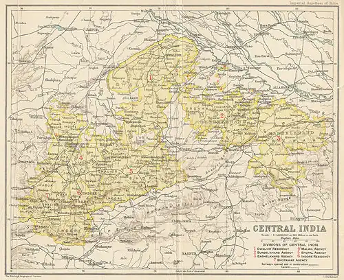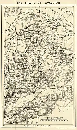 - die zu Gwalior gehörenden Distrikte Bhilsa und Isagarh gingen 1895 an die Gwalior Residency
