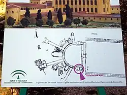 Der Palastkomplex wurde bei Notgrabungen 1991 entdeckt, die aufgrund der Anlage des neuen Hauptbahnhofes von Córdoba durchgeführt wurden. Das Areal befindet sich einige hundert Meter vor den antiken Mauern von Córdoba (lateinisch Corduba), das in römischer Zeit Hauptstadt der Provinz Baetica war.