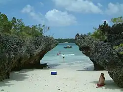 - Tourismus: Die Hauptattraktionen für den Fremdenverkehr sind die Ruinen auf der Halbinsel Ras Mkumbuu. Südöstlich von Chake-Chake findet man die Überreste einer zweihundert Jahre alten arabischen Festung bei Mkame Ndume. Vor allem gibt es Bade- und Tauchmöglichkeiten an unberührten Stränden.[13][14]
