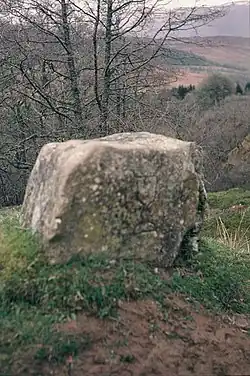 Der Stein steht am westlichen Steilufer des River Roy in Roybridge nordöstlich von Fort William in den schottischen Highlands.