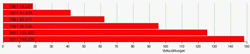 | Volkszählung 1961 | Volkszählung 1971 | Volkszählung 1981 | Volkszählung 1991 | Volkszählung 2001 | Volkszählung 2011 | |||||||