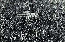 Die chinesische Kulturrevolution (chinesisch 無產階級文化大革命 / 无产阶级文化大革命, Pinyin wúchǎnjiējí wénhuà dàgémìng, – „Große Proletarische Kulturrevolution“ oder kurz 文革 wéngé) war eine politische Kampagne in der Volksrepublik China, die 1966 von Mao Zedong und seinen Verbündeten in der Volksrepublik China gestartet wurde.[1][2] Die Kampagne dauerte bis 1976 und ist in China auch als „Zehn Jahre Chaos“ bekannt.[3][4] Mao startete die Kulturrevolution mit Hilfe der „Gruppe Kulturrevolution“ und anderer.[1] Dazu gehörten seine Frau Jiang Qing, sein Privatsekretär Chen Boda, Verteidigungsminister Lin Biao, die radikalen Kulturfunktionäre Zhang Chunqiao, Yao Wenyuan und der Spezialist für geheime Aktionen Kang Sheng.[5] In diese Zeit fällt auch die Etablierung von Maos Personenkult. Mit der vordergründigen Zielsetzung, kapitalistische, bürgerliche und traditionalistische Infiltrierungen der Gesellschaft durch eine Fortsetzung des Klassenkampfs zu entfernen, ging die Bewegung mit massiven Menschenrechtsverletzungen und politischen Morden bis auf der höchsten Ebene einher; unter anderem kamen Maos jeweils in Ungnade gefallene designierte Nachfolger Liu Shaoqi und Lin Biao ums Leben.[6]