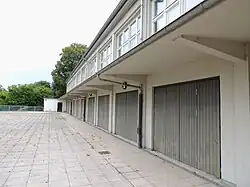Dem nördlichen Haupthaus hangabwärts vorgelagert sind drei parallele Riegel, die im Süden durch einen Quergang mit dem zentralen Treppenhaus verbunden sind. Jeder Riegel enthält vier Klassenräume; der Verbindungsgang ist mit Oberlichten beleuchtet. Die östliche Wand der Klassenzimmer (hangabwärts) besteht aus einer Fensterfront, die vom Fußboden bis zur Decke reicht und den Raum hell erleuchtet; eine Tür erlaubt den unmittelbaren Zugang zur Grünfläche zwischen den Riegeln. Die Sonneneinstrahlung kann im Sommer allerdings zu starker Erwärmung einiger Räume führen. Neu war damals die Auflösung der klassischen Schulbänke, die durch locker gruppierte Stühle und Tische ersetzt wurden,[1] die nach den jeweiligen Zwecken des Unterrichts entsprechend in Reihen oder Gruppen zusammengestellt werden können.[2]