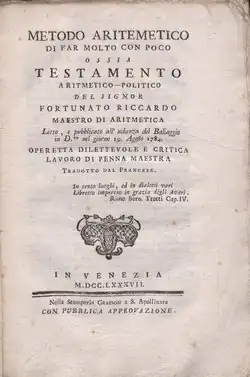 - Testament de M. Fortuné Ricard, maitre d’arithmétique à D***, Lyon, 1784