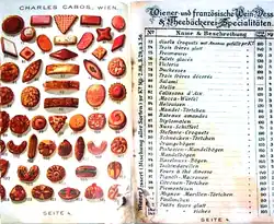 Katalogsseite von Charles Cabos für Theebäckerei-Specialitäten (um 1900)