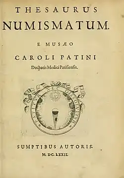 - ↑ Giovanni Gorini: Der Arzt und Numismatiker Charles Patin in Padua. In: Peter Berghaus (Hrsg.): Numismatische Literatur 1500–1864. Harrassowitz, Wiesbaden 1995, S. 41.