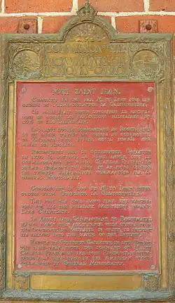 „Erbaut 1743 von M. de Léry auf Befehl von Gouverneur la Galissonnière. Von diesem Stützpunkt aus wurden alle Militärexpeditionen zum Lake Champlain durchgeführt. Am 31. August 1760 ließ Kommandant de Roquemaure ihn auf Befehl von Gouverneur de Vaudreuil sprengen , um zu verhindern, dass er in die Hände der Engländer fiel. Wiederaufgebaut wurde er 1773 von Gouverneur Carleton. Im selben Jahr hielt er unter dem Kommando von Major Charles Preston vom 26. Regiment einer 45-tägigen Belagerung durch die amerikanischen Truppen unter dem Kommando von General Montgomery stand.“