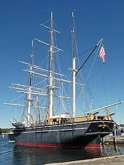- Charles W. Morgan mit Royalsegel am Großmast (Halbtotale)