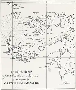 States Bay und Swan Island (heute Chatham Harbour und Weddell Island) auf einer Karte der Falklandinseln von dem Kartographen Charles Barnard aus der Zeit vor 1829