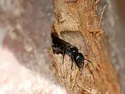 Chelostoma florisomne, Weibchen an einer Nisthilfe