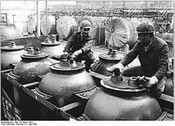 Nach der Machtübernahme der Nationalsozialisten 1933 kommt es zu einer starken Wirtschaftsbelebung. Davon profitiert auch die „IG Bitterfeld“. Es werden neue Produkte in die Produktion aufgenommen und die Anlagen werden erweitert bzw. modernisiert. In einem Abkommen zwischen dem Heereswaffenamt und der IG Farben AG von 1934 wird der Bau einer Magnesiumanlage für Brandbomben beschlossen.[14]