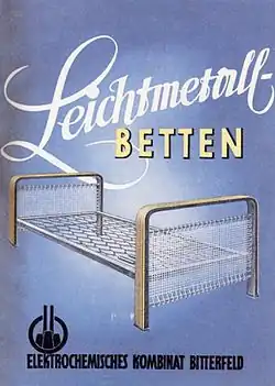 - ↑ Hackenholz, D.: Die elektrochemischen Werke in Bitterfeld 1945–1952, Unternehmen der SAG „Kaustik“. In: Verein der Freunde und Förderer des Kreismuseums Bitterfeld e. V. (Hrsg.): Zur Industriegeschichte der Bitterfelder Region. Heft 8, S. 55.