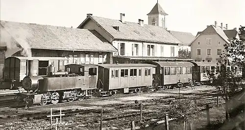 - Locomotive historique-Zug, bestehend aus der Lokomotive Ge 2/2 4 aus dem Jahre 1913 und dem Personenwagen B 763 aus dem Jahre 1930