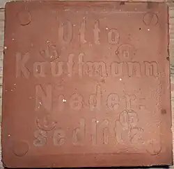 - ↑ Chemische Fabrik, Schamottewaren- & Mosaikplatten-Fabrik Otto Kauffmann (Hrsg.): Vierzig Jahre Geschichte der Firma Otto Kauffmann Chemische Fabrik, Schamottewaren- & Mosaikplatten-Fabrik. Niedersedlitz in Sachsen. 1871-1911, Berlin 1912, S. 48.
