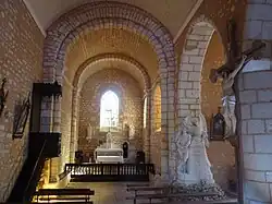 - Die größtenteils aus nur grob bearbeiteten Bruchsteinen gemauerte romanische Pfarrkirche Saint-Antoine stammt aus dem 12. Jahrhundert; weite Teile des Gebäudes wurden in späterer Zeit innen wie außen verputzt. Vor der ansonsten schmucklosen, aber von einem zweigeteilten Glockengiebel überhöhten Fassade befindet sich eine – in der Region seltene – Vorhalle, über deren Funktion nur spekuliert werden kann. Das Innere der Kirche wurde weitgehend vom Putz befreit, so dass die unterschiedlich hohen Bruchsteinlagen sichtbar sind; Fenster- und Bogenlaibungen sowie die vorgelegten Halbsäulen bestehen dagegen aus exakt behauenem Steinmaterial. Das Gewölbe des Kirchenschiffs ist noch verputzt und mit regelmäßig angeordneten Fugenmalereien bedeckt.