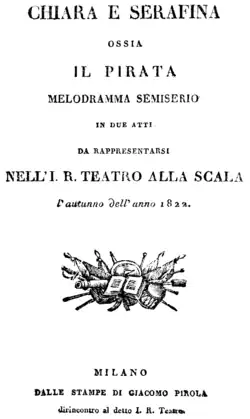 - ↑ a b Chiara e Serafina, ossia Il pirata, Neapel 1822, Libretto der Uraufführung im Internet-Archiv (italienisch; Abruf am 11. September 2021)