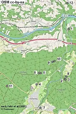 Position von 12 kraterähnlichen untersuchten Depressionen im Lkr. Altötting (Fehr et al. 2005)[7]
