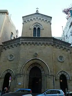 Die an der Via Bentivegna gelegene Kirche wurde als neugotisches Bauwerk gegen Mitte des 19. Jahrhunderts begonnen, nachdem der Vorgängerbau von 1550 abgetragen worden war. Der Architekt des Neubaus war Domenico Marvuglia und als Baumeister ist Giovanni Rutelli dokumentiert, beide Namen finden sich auf Tafeln neben dem Hauptportal. Das obere Geschoss der basilikalen Backsteinfassade springt gegenüber der Portalzone deutlich zurück. Das Hauptportal mit unterschiedlich gestalteten Säulen wird begleitet von zwei kleineren Seitenportalen. Nach oben wird das untere Geschoss von einem weit vorkragenden Gesims abgeschlossen. Beide Geschosse weisen einen umlaufenden Kranz von Blendarkaden auf. Der obere Fassadenteil wird beherrscht von einem maßwerkgegliederten, flachgedrückten Spitzbogenfenster.