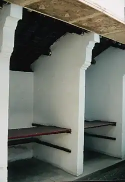 In den Provinzhauptstädten befanden sich eigens für die Examina angelegte riesige, mauerumwehrte Gelände von der Größe eines Stadtteils. Zugänglich waren diese nur über einen einzigen, streng bewachten Haupteingang, der aus einer Reihe aufeinanderfolgender Tore bestand. In der Mitte befand sich ein Zentralturm (Mingyuan Lou), von dem aus die obligatorischen Böllerschüsse und andere akustische Signale abgegeben wurden. Von den hiervon wegführenden Hauptalleen (Yongdao) zweigten wiederum zahlreiche schmale, endlos lange, mit Schriftzeichen gekennzeichnete Gassen (Haodong) ab, in denen sich dicht an dicht Tausende von nummerierten Prüfungszellen (考舍, kǎoshè, 考房, kǎofáng) aneinanderreihten. Die Zellen waren durch Seitenwände voneinander getrennt und bestanden lediglich aus drei beweglichen Brettern, die den Kandidaten als Sitz, Pult und Regal dienten. Türen gab es keine. Weiter befand sich auf dem Prüfungsgelände ein abermals für sich ummauerter Prüferbezirk, der in ihrerseits streng separierte Bereiche für die Aufsichtsbeamten und die Prüfer unterteilt war.