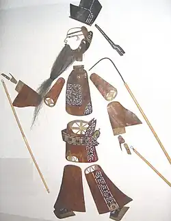 Während im Schattentheater Kulissen und Gegenstände meist aus einem Stück gefertigt sind, bestehen menschlichen Figuren traditionell aus bis zu neun beweglichen Teilen, wobei paarweise vorkommende Teile nur einfach gezählt werden. Es handelt sich hierbei um