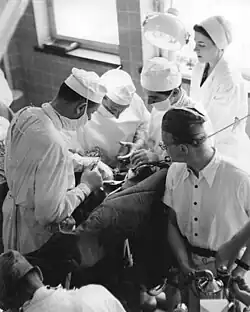 Im 19. Jahrhundert gewann die deutsche Chirurgie durch Johann von Mikulicz Weltgeltung. Der erste deutsche Chirurgenverein wurde durch Friedrich Ernst Baumgarten (1810–1869) gegründet.[63] Über die schwierige Lage der Chirurgie in der Deutschen Demokratischen Republik berichtet Helmut Wolff.[64] Einige bekannte Fachärzte für Chirurgie aus dem deutschsprachigen Raum sind: