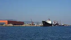 ![]() Die Chong Chon Gang im Vordergrund in ihrem Heimathafen Namp’o im Oktober 2014