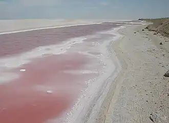 Der Salzsee wird durch Wasserläufe aus den nördlichen Bergen, die herausgespülte Salze mit sich führen, gespeist. Aufgrund der extremen klimatischen Bedingungen (Jahresniederschlag 100 mm, Höchsttemperaturen bis 50 °C) verdunstet das Wasser und die Salze kristallisieren zu einer trockenen Kruste, unter der sich tiefer Schlick befindet. Im Sommer trocknet das Chott fast völlig aus und wird zu einer Salztonebene. Es handelt sich weitgehend um feinlaminare Gipsschichten mit Tonmineraleinlagerungen.