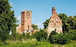 Am südlichen Ortseingang von Chrabrowo auf westlicher Seite befinden sich die Ruinenreste der Powunder Kirche. Sie entstand in der ersten Hälfte des 14. Jahrhunderts. Es handelt sich um ein Bauwerk aus verputzten Feld- und Ziegelbausteinen mit gerade geschlossenem Chor und gewölbtem Innenraum mit Wandmalereien aus den Jahren 1370/80, von denen kürzlich Spuren des Bildes des Apostels Paulus freigelegt werden konnten.