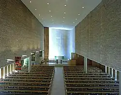 Das Kirchengebäude wurde vom Architekturbüro Saarinen and Saarinen geplant, einer Partnerschaft zwischen Eliel Saarinen (1873–1950) und Eero Saarinen (1910–1961). Die behauenen Steintafeln wurden von William M. McVey (1922–1976) geschaffen. Die Kirche wurde 1949 eingeweiht und von Anfang an als architektonisches Meisterwerk anerkannt. Sie gilt als frühes Beispiel moderner Kirchenarchitektur.[1]
