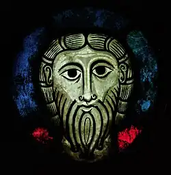 Ob die Scheibe Christus darstellt, ist nicht gesichert. Eine Christus-Darstellung trägt nach den ikonografischen Gepflogenheiten der Zeit immer einen Nimbus mit einem Kreuz. Da der ursprüngliche Nimbus aber nicht erhalten ist, kann das nicht mehr festgestellt werden.[5]