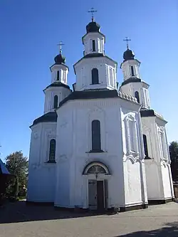 Die orthodoxe Kirche des Moskauer Patriarchats im Stil des ukrainischen Barocks wurde in den Jahren 1682 bis 1684 errichtet. Sie ist ein Werk der Bauhütte, die 1689 in Charkiw die Kathedrale (Pokrowski sobor, Покровський собор) des Maria-Schutz-Klosters (Свято-Покровський монастир) errichtet hat.
