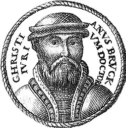 - ↑ Auf seinem Bildnis von Lucas Cranach d. J. 1555 wird Christian Brück „Seines Alters 37“ angegeben.