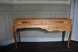 - Nur zwei authentische Hammerklaviere sind erhalten, die in der Art der zeitgenössischen englischen Instrumente eine einfache Stoßmechanik aufweisen.[8] Ein reichverziertes Quer-Hammerklavier von 1785, ursprünglich in der Heyer-Sammlung[9] kam in die Sammlung Rück, Nürnberg,[10] die heute im Germanischen Nationalmuseum in Nürnberg aufbereitet ist.