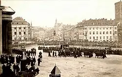 Königin Louise starb am 29. September 1898 auf Schloss Bernstorff im Alter von 81 Jahren.[22] Christian, der im hohen Alter hohe Popularität genoss, starb am 29. Januar 1906 im Schloss Amalienborg im Alter von 87 Jahren nach einer Regierungszeit von 42 Jahren und 75 Tagen. Nach einer Aufbahrung in einem Castrum doloris in der Schlosskirche von Christiansborg wurde er im Dom zu Roskilde, dem traditionellen Begräbnisort der dänischen Könige auf der Insel Seeland, beigesetzt.[23] Sein 63-jähriger Sohn Friedrich VIII. folgte ihm auf den dänischen Thron.
