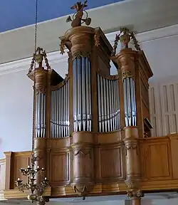 II/p | 27 | Zuschreibung; 1865 freies Pedal ergänzt; 1946–1948 Dispositionsänderungen; 1987 Rekonstruktion unter Beibehaltung des Pedals; Rokoko-Gehäuse; Denkmalorgel |