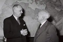 Nachdem er im März 1956 in Kairo Gespräche geführt hatte, sagte er einen für den 7. April 1956 geplanten Besuch in Israel ab.[1] Er nahm er im Oktober 1956 an der Planung des Suez-Feldzugs gegen Ägypten teil. Er war auch an den Verhandlungen über die Römischen Verträge beteiligt, der Gründungsurkunde der Europäischen Gemeinschaften, die er am 25. März 1957 im Namen Frankreichs unterzeichnete.