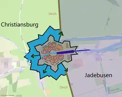 Nach dem Tod des Oldenburger Grafen Anton Günther fiel die Grafschaft Oldenburg an seinen Verwandten, den König von Dänemark Christian V., da Anton Günther keine legitimen Erben besaß. Seinem unehelichen, aber durch Kaiser Leopold I. legitimierten Sohn, dem späteren Grafen Anton I. von Aldenburg, übertrug er bereits 1654 das Amt Varel, 1658 die Herrschaft Kniphausen, die beide somit nicht mehr Bestandteil der Grafschaft Oldenburg waren. Der dänische König erkannte diese Regelung jedoch nicht an und baute nach dem Tod von Anton I. die Festungsstadt direkt vor den Toren Varels, um seine dänische Herrschaftsansprüche zu untermauern.[2]