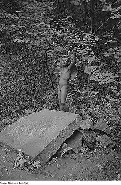 Indirekt stilbildend für die Landschaftsgärten dieser Zeit war auch Jean-Jacques Rousseaus Werk Julie oder Die neue Heloise (1761); es wird hier aber nicht direkt zitiert. Ein Teil der Staffagen würdigt Zeitgenossen wie Herzogin Anna Amalia, Johann Gottfried Herder, den Komponisten und Dresdner Hofkapellmeister Johann Gottlieb Naumann und Leopold von Braunschweig. Der Großteil ist jedoch Familienmitgliedern der Brühls gewidmet. Sie transportieren das Selbstbild der Familie, vermitteln ihre Beziehungen untereinander und dienen der Rehabilitation des Vaters und Schwiegervaters, des ehemaligen Premierministers Heinrich von Brühl.[1][2][4][5]
