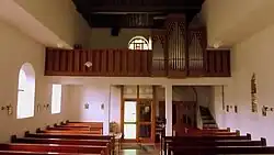Die Orgel der Kirche wurde 1991 von der Firma Hugo Mayer Orgelbau (Heusweiler) erbaut. Das Schleifladen-Instrument verfügt über 9 (10) Register, verteilt auf zwei Manuale und Pedal. Die Spiel- und Registertraktur ist mechanisch.[4] Wenn kein Organist anwesend ist, wird die Begleitung der Kirchenlieder von einem so genannten Orgamat übernommen, der per Knopfdruck in Gang gesetzt werden kann.[5] Die Disposition lautet wie folgt:[4]