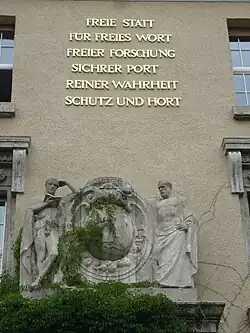 Bei der feierlichen Grundsteinlegung zum Bau der Deutschen Bücherei in Leipzig formulierte Vitzthum von Eckstädt den Leitspruch für die Sammlung deutscher Literatur in der neuzuerrichtenden Institution mit den Worten: „Freie Statt / für freies Wort / freier Forschung / sichrer Port / reiner Wahrheit / Schutz und Hort“. Diese Worte wurden dann, neben einem Reim von Friedrich Schiller in großen Lettern an der Fassade des Neubaues angebracht.[1]