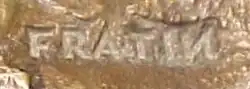 Zur Signatur seiner Bronzen benutzte Fratin verschiedene Stempel, mit denen er seinen Nachnamen in Blockbuchstaben abbildete.