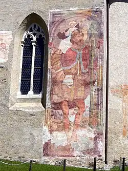 Christophorusfresko im rechten Seitenschiff der Stiftskirche St. Lambrecht, Steiermark