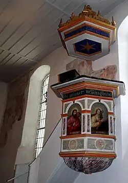 Die sechseckige Kanzel entstand um 1600. Sie ist wie der Altar aus Holz gefertigt. In der Brüstung befindet sich die vier Evangelisten mit ihren Attributen in Leimfarbe gemalt. Die Kanzel ist in vier Seiten des Sechsecks geschlossen und abgesehen von der Malerei schlicht gehalten. Der Schalldeckel ist ebenfalls sechseckig. Er wurde 1680 von H. Christoph Zormehlen geschaffen.