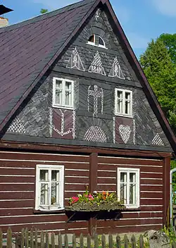 - zahlreiche mit Schiefer verkleidete Umgebinde- und Fachwerkhäuser