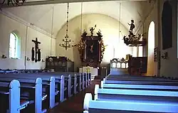 Die Predigertafel zeigt an, dass die Reformation in der Kirche 1580 eingeführt wurde. Seither ist die Kirche evangelisch-lutherisch.