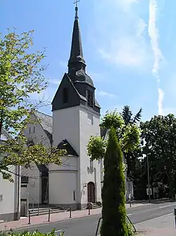 Die asymmetrische Saalkirche wurde 1904 nach einem Entwurf von Ludwig Hofmann mit Anklängen an den Jugendstil gebaut. An das Kirchenschiff schließt sich im Osten ein niedriger eingezogener Chor an. Nach Süden wurde an das Kirchenschiff ein Querarm angebaut, an den sich nach Westen der Kirchturm anschließt, der einen mit einer glockenförmigen Haube bedeckten und einem spitzen Helm bekrönten achteckigen Aufsatz hat, der mit einem Satteldach kombiniert ist.
