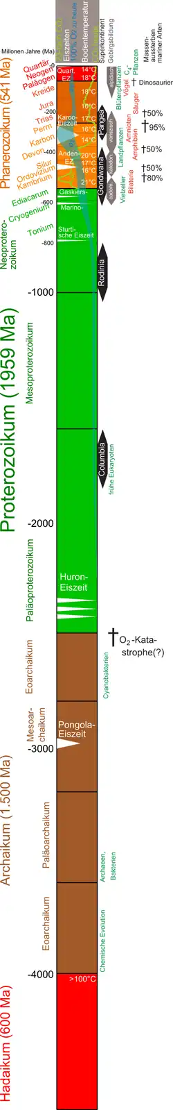 | Ära/Zeitalter | Periode | Ereignisse | Beginn (mya) | |||