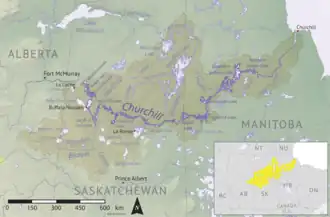 | Ursprung | Churchill Lake 55° 49′ 6″ N, 108° 22′ 46″ W | |